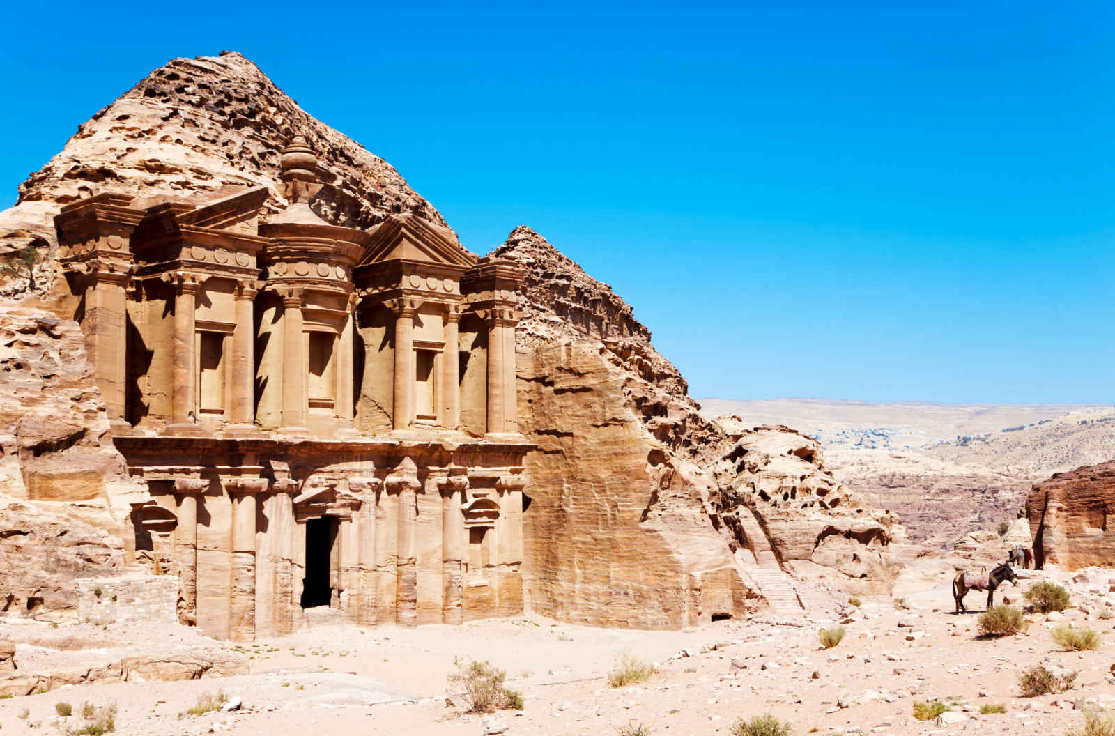 Petit-déjeuner puis journée consacrée à la visite de Petra. Mentionnée dans la bible sous le nom de Reqem (la « bariolée »), Petra vous donne l’occasion d’admirer les beautés naturelles tout en vivant l’histoire au travers de ses monuments. Elle fut dès le 2e siècle av. JC la capitale des Nabatéens qui y taillèrent d’innombrables tombeaux à même le roc, ajoutant à leur site des monuments d’urbanisme d’influence gréco-romaine, un théâtre… Depuis 1140, elle échut a Renault de Châtillon après son mariage arrangé avec Etiennette de Milly. Dès lors, l’histoire n’a eu cesse de rebondir. Nuit à l’hôtel « Petra Guest House » en chambre standard.