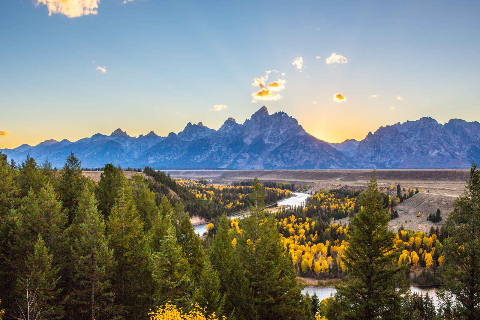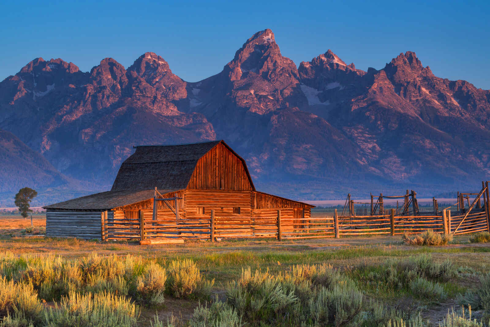 Ne vous attardez pas trop à Jackson car l’aventure vous attend dans le parc de Grand Teton, dont le joyau est la spectaculaire chaîne des Tetons, qui se dresse au-dessus d’une large vallée, près du cours supérieur de la « Snake River ». 1 250 km2 de pics déchiquetés, de lacs alpins, de torrents, de terres marécageuses et de plaines couvertes d’armoises, s’offrent à vous au sud du parc national de Yellowstone. Roulez en direction de Moran jusqu’au belvédère de la Snake River. Là, perché au-dessus d’un large lacet de la rivière, vous pourrez jouir d’une des plus belles vues de « The Grand » et de ses sommets, soutenues par des contreforts aux pentes arrondies, qui ont suggéré ce nom évocateur, « Grands Tétons », aux coureurs des bois français qui chassaient dans la région au début du XIXème siècle. Des balbuzards et pygargues à tête blanche vous escorteront sans doute jusqu’à votre hébergement, un merveilleux lodge caché dans une forêt de pins, à la frontière avec le parc Yellowstone.