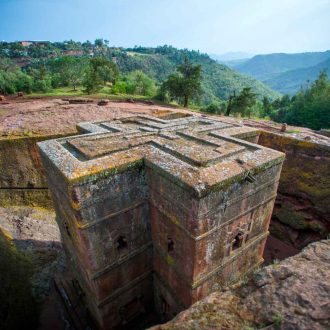 Découverte du village médiéval de Lalibela (2600m. alt.) qui abrite d’indéniables héritages religieux éthiopiens classés au patrimoine de l’humanité par l’UNESCO. Les onze églises de Lalibela présentant chacune d’entre-elles un style différent sont connues depuis peu du monde extérieur. La plupart de ces églises ont été excavées de la montagne et sont reliées par un mystérieux réseau de tranchées et de tunnels. Déjeuner, puis pour finir en apothéose, visitez Bete Gyorgis qui est la plus majestueuse des églises du site, sculptée en forme de croix grecque. Repas (petit déjeuner, déjeuner, dîner) et nuit à l’hôtel.