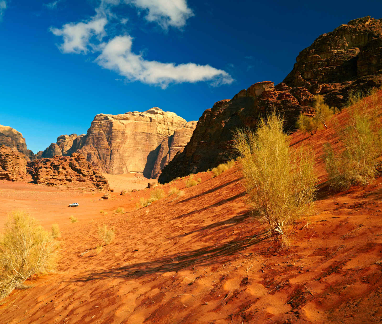 Petit-déjeuner puis départ pour Beihda, un village néolithique (env. 7000 ans av. J.C.), d’une importance exceptionnelle, dont les fouilles sauront captiver tout voyageur par leurs vestiges en très bon état de conservation retraçant l’évolution de l’habitat humain. Poursuite vers le Wadi Rum, vallée de type saharien. Vous l’atteindrez en parcourant une étonnante plaine sablonneuse, où la route frôle quelques-unes de ces innombrables et étranges formations rocheuses. Excursion en 4×4 (environ 4h) pour la découverte du désert. Dîner traditionnel et nuit dans un camp bédouin.