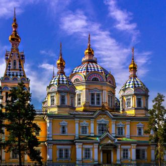 A votre arrivée, accueil et transfert à l’hôtel pour vous reposer. Visite de la ville avec une balade au pittoresque bazar vert, au parc de Panfilov et sa belle cathédrale orthodoxe Zenkov, au mémorial de la victoire et au musée national des instruments de musique. Déjeuner puis poursuite des visites avec le musée historique d’Etat, le monument de l’Indépendance et la place centrale. Dîner et nuit à l’hôtel.