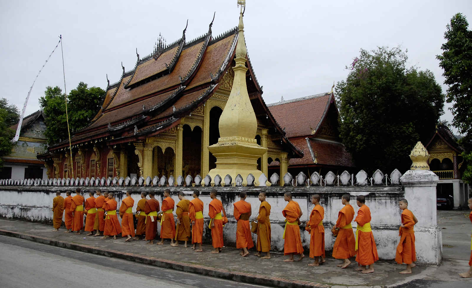 Aux premières lueurs du jour, vous assisterez au spectacle surprenant des bonzes collectant les dons des villageois à travers la vieille ville. Après le petit déjeuner, balade dans la vieille ville puis visite du Wat Xieng Thong, le plus beau temple de la ville, construit dans le plus pur style Lao. À quelques pas se trouve le Wat Sène, la résidence du Patriarche, pour déambuler de temple en temple tout en découvrant les laotiens vaqués à leurs occupations. Poursuite de la visite par le musée d’Arts Traditionnels et d’Ethnologie (TAEC), du Wat Manorom, et du Wat That Louang, lieu d’incinération des plus hauts dignitaires de la famille royale. Continuation avec le Musée National installé dans l’ancien Palais Royal et le Wat Mai avec sa galerie frontale richement décorée. En fin d’après-midi, ascension de la colline de Phousi d’où s’offre une belle vue sur la ville et le Mékong. Nuit à l’hôtel.