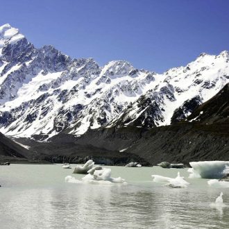 Petit déjeuner puis départ avec votre véhicule à travers la région fruitière de Central Otago puis le long du lac Pukaki d’où vous aurez une vue imprenable sur le mont Cook, point culminant de la Nouvelle-Zélande (3 755 m.).. Nuit à l’hôtel.