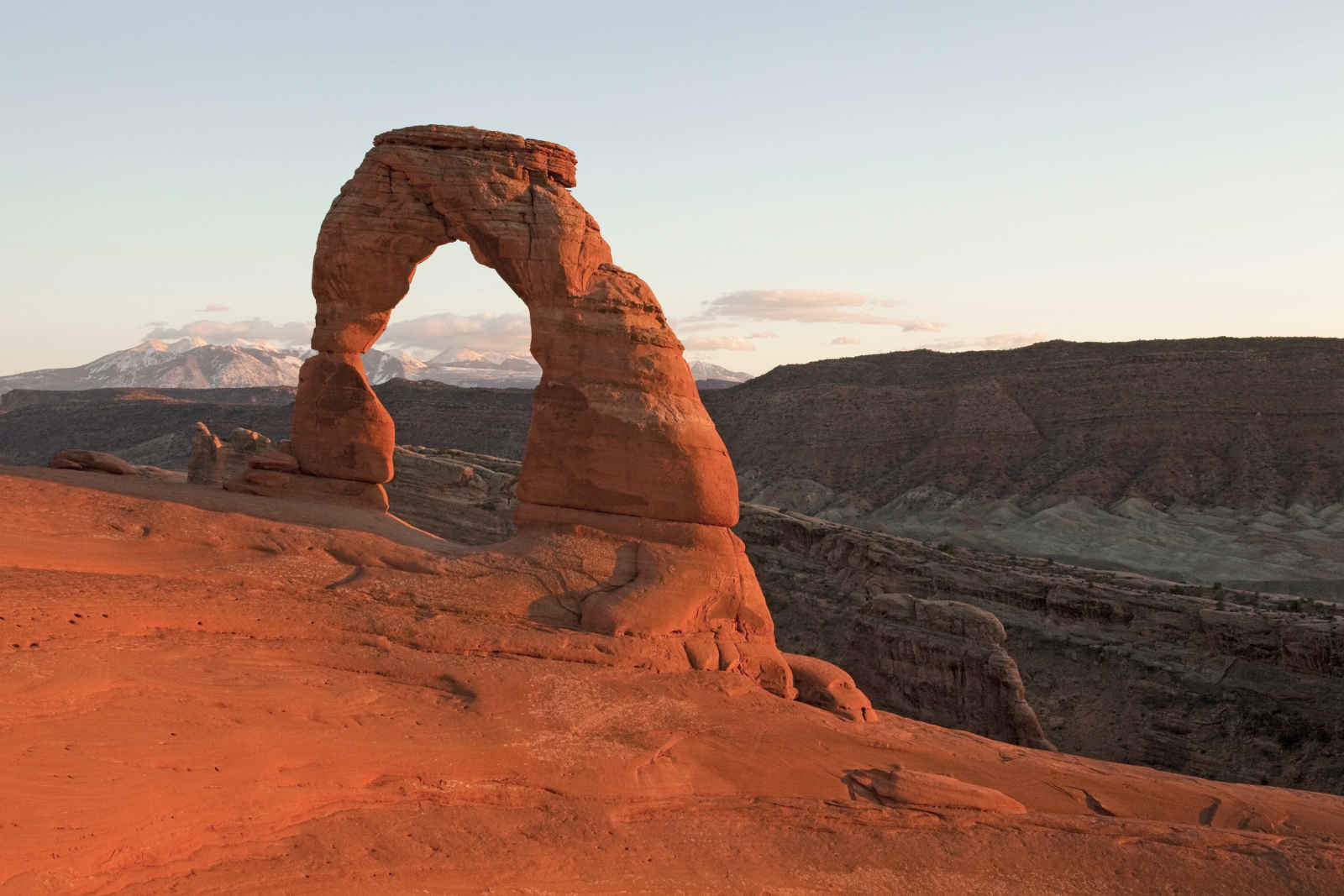 Le Parc National des Arches offre ses majestueuses arches de grès d’Entrada sculptées par le vent, l’eau, le soleil et le gel comme autant de fenêtres ouvertes sur des paysages éblouissants que les amérindiens croyaient venus d’un autre monde. Vous épouserez aisément leurs croyances lorsque vous aurez la chance d’observer à travers le merveilleux orifice de la « Delicate Arch » un coucher de soleil illuminant les neiges éternelles des panoramiques « La Sal Mountains ».
