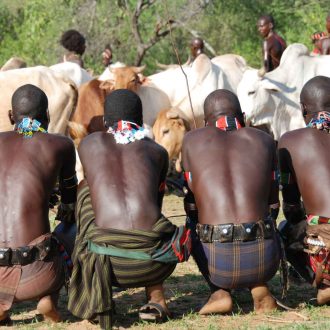 Expédition dans le parc national de Mago à la rencontre des Mursi, la tribu la plus renommée de la basse vallée de l’Omo, à cause de leur attribut le plus caractéristique : le plateau labial portés par les femmes tandis que les hommes sont confrontés à gagner un donga, féroce combat de bâton mesurant près de deux mètres qui se termine occasionnellement par la mort d’un des protagonistes. Puis, vous partez pour la rivière Omo pour rencontrer les Bodi. Déjeuner en cours d’excursion. Enfin, départ pour Turmi, la capitale des Hamer. Dîner et nuit à l’hôtel avec petit déjeuner.