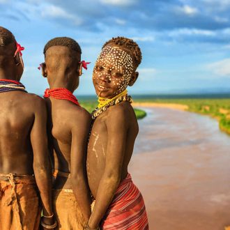 Vous rejoindrez le village de Korcho, situé au bord d’une falaise offrant une superbe vue sur la rivière Omo, où vous rencontrez les Karo : tribus connues pour appliquer des peintures à base de craie sur leurs anatomies et dont le nom signifie » poisson » dans leur langage. Puis, balade à la rencontre des Hamer dans leurs villages, qui sont connus pour leur goû pour les scarifications. Leur rituel de passage à l’âge adulte consiste à faire courir le jeune candidat sur le dos d’une dizaine de zébus placés côte à côte. Déjeuner en cours d’excursion. Dîner et nuit à l’hôtel avec petit déjeuner.