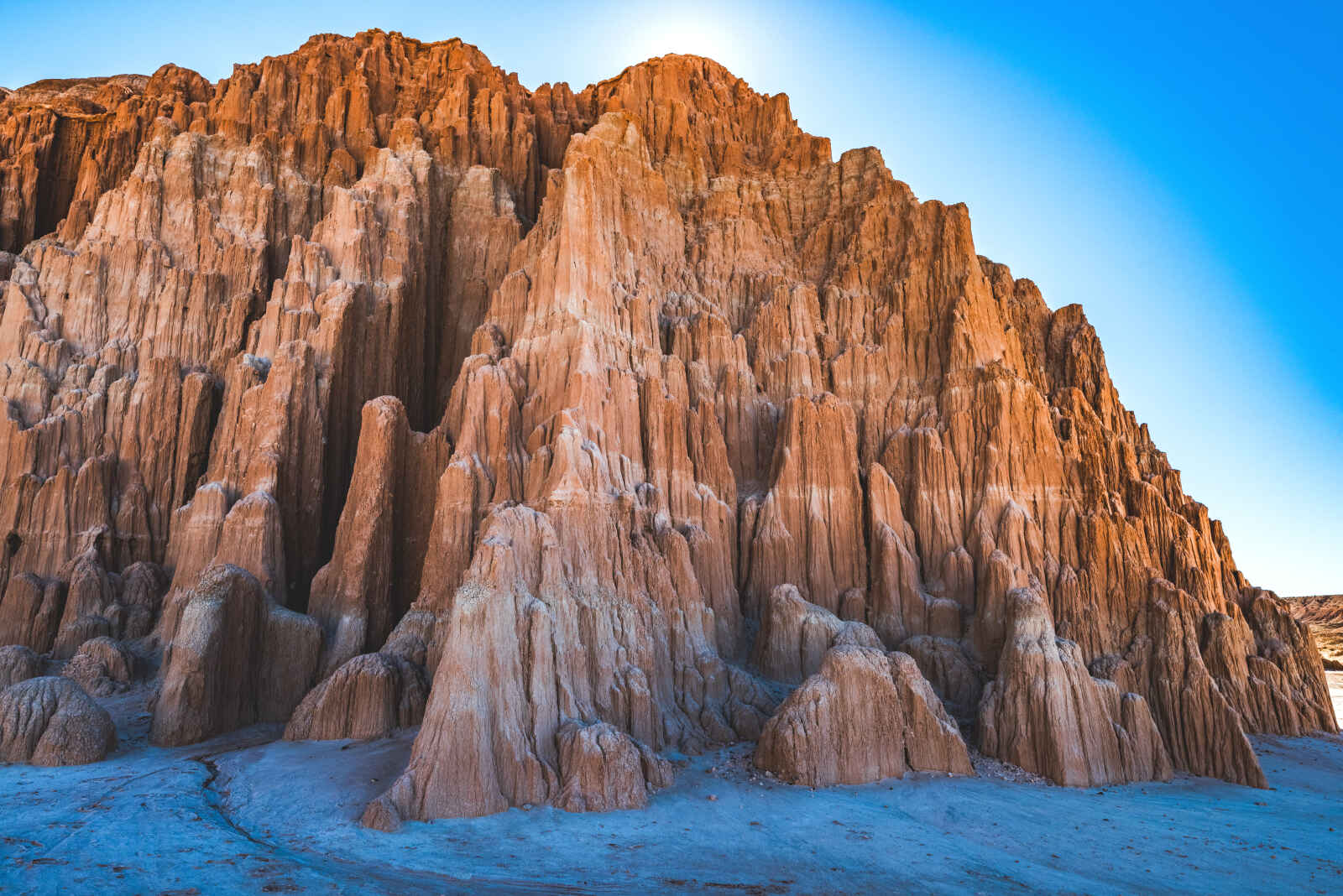 Les néons crépitent encore sur Vegas au petit jour mais c’est l’horaire idéal pour se plonger dans le parc d’état de la vallée du Feu. Crée en 1935, c’est le plus ancien mais aussi le plus grand parc d’état du Nevada et son impressionnante variété géologique, tapisserie accidentée de grès aztèque rouge vif marié au calcaire gris et havane lui vaudrait aisément le titre de parc national ! Parcourez le plus tôt possible la route panoramique qui traverse d’est en ouest le parc, et vous mène au pied de formations rocheuses étonnantes telles qu’Arch Rock, Piano Rock ou Rainbow Vista qui offre une vue panoramique sur le grès multicolore variant de l’orange et brun à des nuances plus profondes à mesure que les rayons du soleil obliquent dans le ciel d’un bleu immaculé. De nombreux sentiers permettent également d’approcher des pétroglyphes gravés dans la roche par les Anasazis qui s’installèrent dans la région le long d’une étroite étendue d’eau il y a environ 2 500 ans.