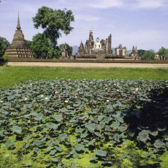 Étapes : Petit déjeuner puis au nord d'Uthai Thani, visite de la vallée cachée de Hub Patthart " jardin d'Eden " auquel vous accèderez par une grotte. Puis, départ en direction de Khamphaeng Phet " la muraille de diamant " ancienne ligne de défense du royaume de Sukhothai et inscrite au patrimoine mondial par l'UNESCO. Déjeuner puis visite des sites bucoliques Wat PhraKeo et Wat Phra That. Continuation avec la visite des sites Si Iryabot, du Wat Singh et du Wat Chang Rop où la base du chedi est soutenue par des éléphants. Avant votre arrivée à Sukhothai, visite d'un village de potiers. Nuit à l'hôtel.
