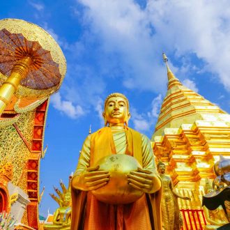 Petit déjeuner puis la matinée sera consacrée à la vieille ville avec un arrêt à l’ancienne muraille, aux douves et à une porte de la vieille ville. Continuation avec la visite des plus beaux temples : le Wat Prah Singh et son Viharn aux magnifiques peintures murales. Puis à pied vous rejoindrez le Wat Phan Tao, ancienne demeure princière en bois et le Chedi Luang avec son énorme reliquaire en partie détérioré suite à un tremblement de terre. Tour en tuk tuk dans les rues de la vieille ville qui vous déposera au grand marché central de Varorot et sa section des fleurs côté rivière. Déjeuner au restaurant « Antic House » magnifique maison ancienne en teck. L’après-midi, visite du très vénéré temple de Doi Suthep (1 056 m. alt.). L’accès se fait par un grand escalier avec des rampes en forme de naga (serpent mythologique). Depuis la terrasse du temple la vue embrasse toute la vallée. Transfert à l’aéroport de Chiang Mai et envol pour Paris. Nuit à bord.