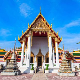 Petit déjeuner puis le matin, transfert en voiture jusqu’au pont Taksin. Embarquement en bateau et traversée jusqu’au merveilleux marché aux fleurs qui borde la rivière et des canaux (klongs) de Thonburi. Puis visite du Wat Arun (temple de l’aube) et du musée des Barges Royales. Déjeuner au restaurant Supatra au bord de la rivière. L’après-midi visite du Grand Palais et du magnifique temple du Bouddha d’Emeraude, puis du Wat Pho célèbre pour son bouddha couché. Nuit à l’hôtel.