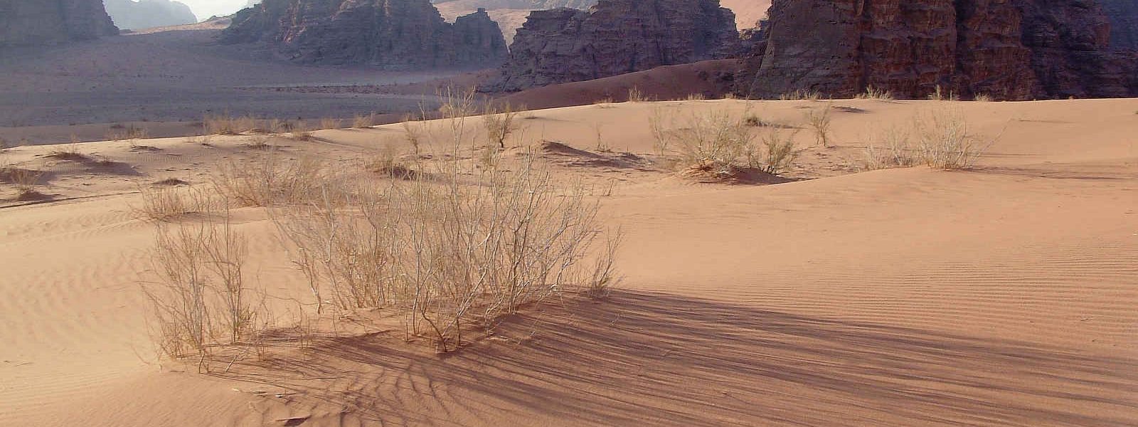 Etendue désertique de 74 000 hectares, Wadi Rum est un site mélangeant nature et culture. Ce décor semble tout droit imaginé pour un film. Canyons, falaises, grottes, rampes, collines de roches... Les structures de pierre sont un spectacle qui ne laisse personne indifférent. Cette zone protégée par l'UNESCO recèle un patrimoine historique important, dont des inscriptions gravées et des pétroglyphes. Ces vestiges du passé sont les témoins de l'évolution de l'écriture. Le désert de Wadi Rum est marqué par 12 000 d'interactions humaines et naturelles. Situé près de la frontière avec l'Arabie Saoudite, une atmosphère étrange s'en dégage. Des roches rougies par le soleil, du sable à perte de vue, un ciel bleu, un soleil persistant... on semble au bout du monde.